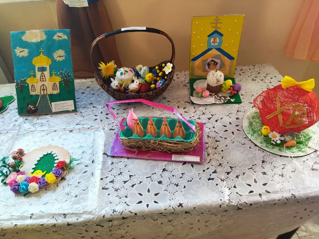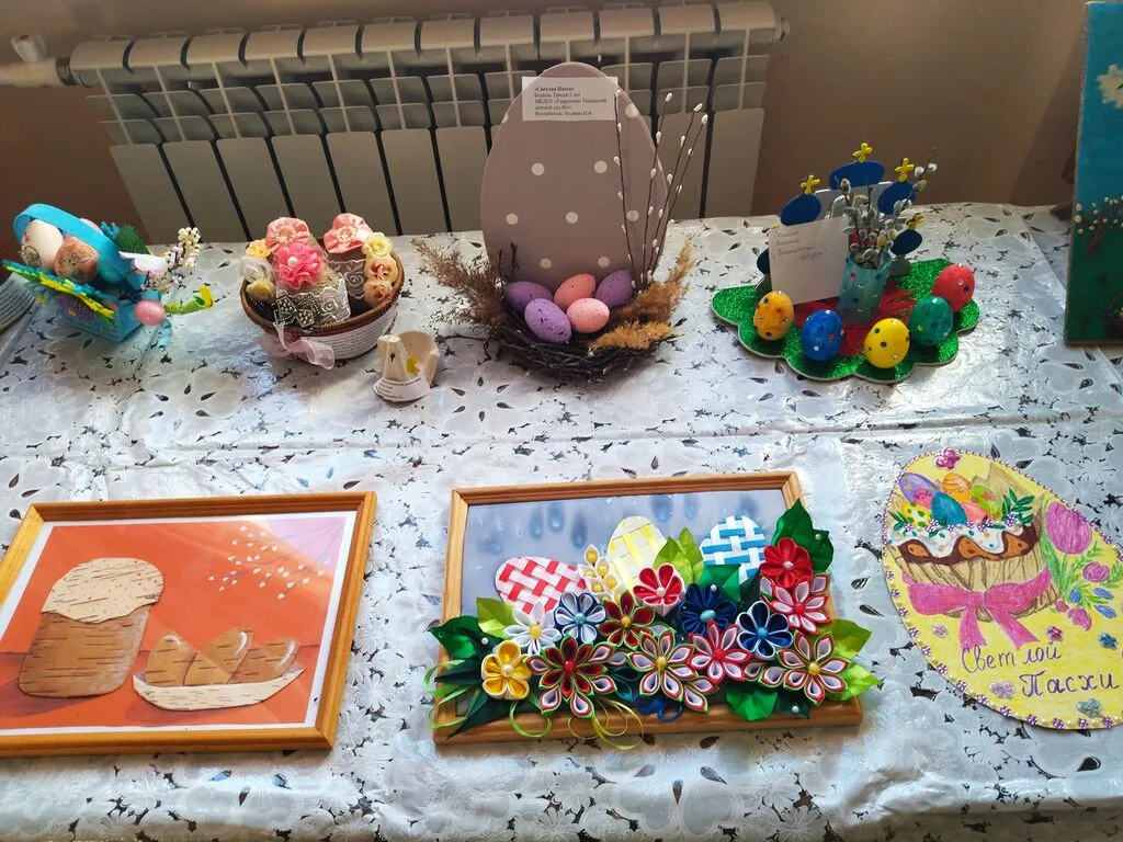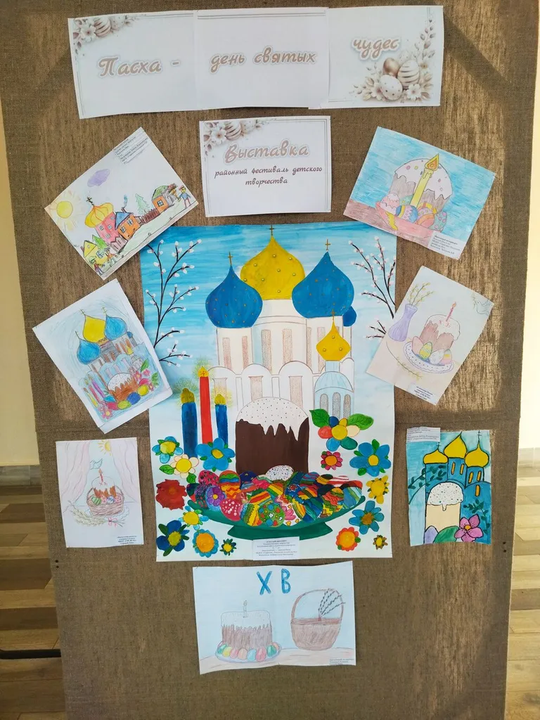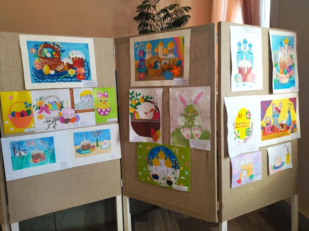 Для своих картин и поделок дети использовали гуашь, цветные карандаши, фломастеры, акварель, картон, фетр, атласные ленты, бисер и хорошее настроение. Маленькие художники постарались на славу. Рисунки получились разные: кто-то сумел нарисовать белокаменную церковь, кто-то изобразил вазочку с веточками пушистой вербы, кто-то – вкусное угощение – куличи и крашеные яйца… А какие необычные, красивые поделки придумали! Но абсолютно все ребята сумели передать особое, радостное настроение, с которым люди встречают Пасху. Вся выставка наполнена теплом и радостной атмосферой. Уважаемые взрослые и дети, приглашаем вас на нашу выставку! С творческими работами участников данного фестиваля вы можете ознакомиться на выставке, которая расположена на втором этаже Дома культуры в фойе кинозала.